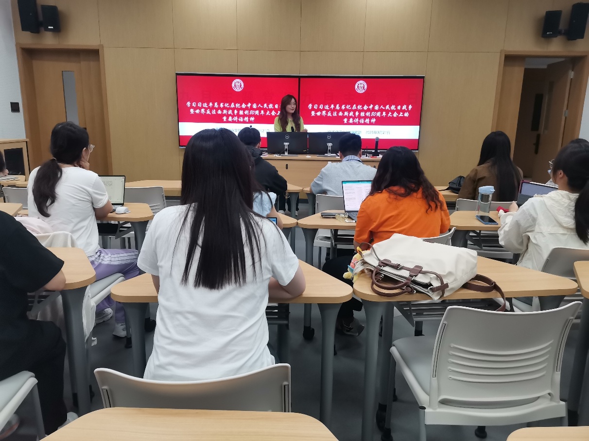 9月21日下午为深入学习贯彻习近平新时代中国特色社会主义思想,弘扬伟大抗战精神,女生自慰 2025级硕士生3班党支部在公学二楼203教室开展“传承红色基因,汲取奋进力量”主题党日活动,支部20余名学生党员参加本次学习活动,活动由支部书记卢嘉仪主持。