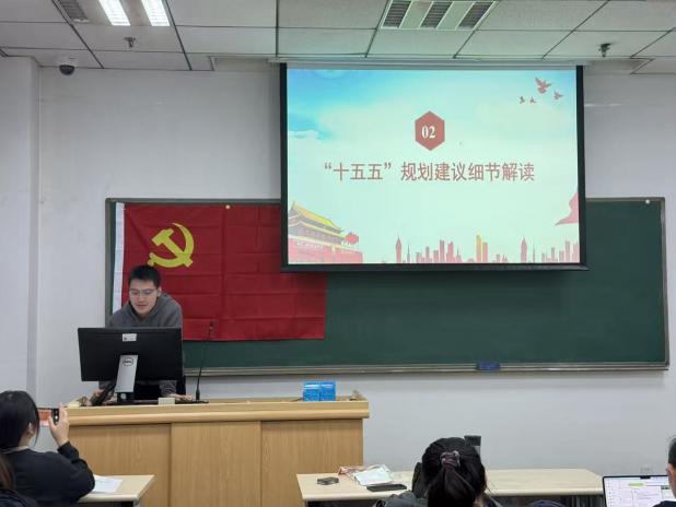 第三领学小组组长朱羿戎同志围绕党的二十届四中全会精神作领学发言。他指出,全会承担着为“十五五”时期的发展把方向、定基调、绘蓝图的重大使命,对于推动国家治理体系和治理能力现代化具有深远战略意义。随后,领学小组成员以图文视频融合的方式,依次从“十五五”规划建议全文概览、“十五五”规划建议细节解读、《习近平谈治国理政》第五卷三个维度,带领全体党员进行学习。通过系统梳理,与会党员深刻认识到,新时代新征程必须坚持党的全面领导,牢牢把握人民至上和高质量发展的根本要求,因地制宜发展新质生产力,统筹发展与安全,增强风险意识与底线思维 。