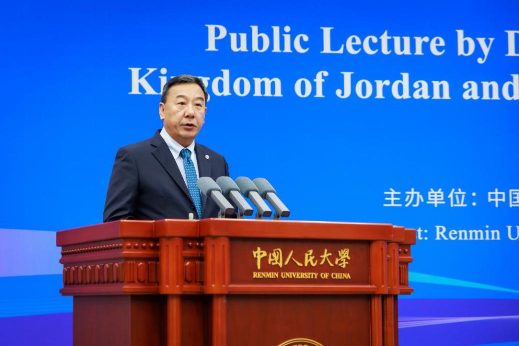 胡萨姆·侯赛尼在致辞中表示,今年是约中建交48周年,也是双方战略伙伴关系建立10周年。长期以来,约中两国在双方领导人的共同关心下,紧密合作、共谋发展、成果丰硕。约旦地处中东中心,是世界贸易和文化交流的纽带、各国文明交汇的十字路口,也是全球事务的重要参与者、南方智慧的代言人,始终积极倡导国际合作,在中国“一带一路”倡议中发挥着重要作用。他表示,约中两国在国际治理中有很多共同的价值观念,希望未来双方能够进一步凝聚价值共识、深化合作领域、拓展合作平台,为约中关系注入新动能,为新时期国际治理体系构建贡献更多智慧。