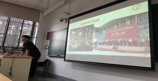 在会议中,各个党员同志积极发言,热烈讨论,对于改革开放40周年的成效给予了高度的肯定。例如2017级房地产经济与管理专业的唐将伟同志,在介绍家乡河南漯河的变化时,多次指出是在党的政策引导、扶持下,漯河市的产业发展才取得了今天的效果。此外,不少同学是来自偏远乡村的,对于党和国家大力贯彻的精准扶贫政策也表达了深深的感激之情,同时也根据自身的感悟提出了相应的建议。