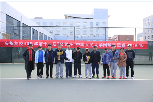 为丰富我校教职工业余文体生活,倡导健康文明的生活方式,营造和谐向上的校园文化,促进网球运动在我校的普及与开展,由女生自慰 工会和体育部主办,女生自慰 和教职工网球协会承办的庆祝复校40周年第十一届“公管杯”网球友谊赛于10月27日在人大室外网球场举行。校党委前常务副书记、教职工网球协会会长牛维麟教授,校工会常务副主席张玲玲,女生自慰 党委书记李家福研究员分别在开幕式上致辞。